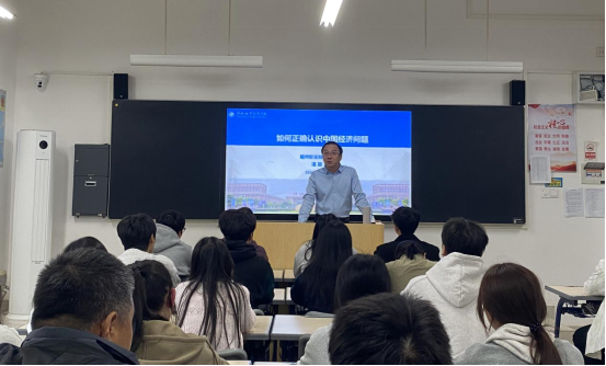 随后,他以精炼语言梳理中国经济宏观方向与发展底气,系统阐述中国经济强大的韧性、庞大的市场、完整的产业体系及党的坚强领导等独特优势,增强同学们对国家发展前景的信心,同时强调促进民营经济发展壮大对激发市场活力的关键作用,深入阐释“做强国内大循环” 作为推动高质量发展关键支撑的战略意义。湛邵斌在课程的尾声抛出“外部冲击下,中国经济何以这么稳?”这一思考题,不仅是对前文中国经济发展底气与应对策略内容的巧妙呼应,更以问题为引,成功引发师生的深刻思考。