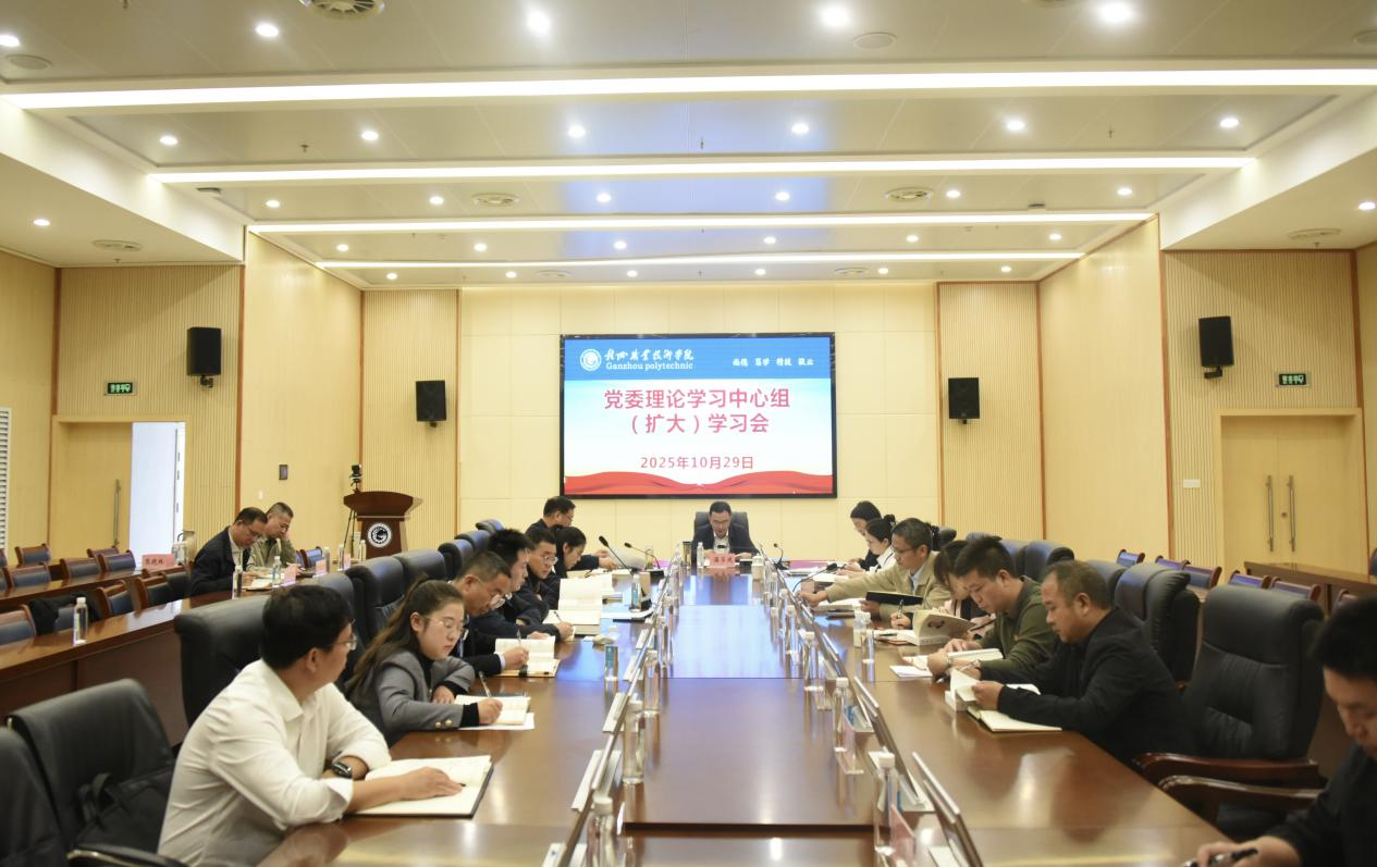 10月29日上午,学校在行知楼二楼会议室召开党委理论学习中心组(扩大)学习会,专题学习《习近平谈治国理政第五卷》。市委教育工委副书记赖晓琴、市教育局职高科干部郑婵娟莅临现场巡听指导。党委书记温学延主持会议并讲话,学校在家党委班子成员参加学习,各二级学院党总支书记,马克思主义学院党支部、公共基础部党支部书记、各机关党支部书记等人员列席会议。