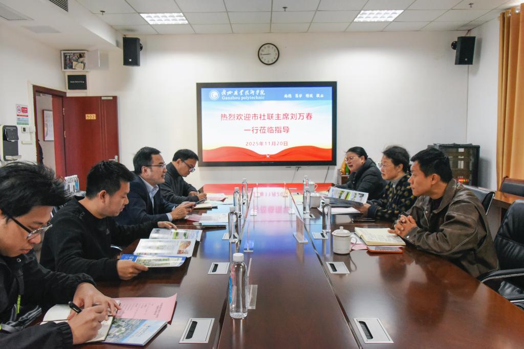 11月20日下午,赣州市社会科学界联合会主席刘万春一行莅临我校调研,就我校社会科学研究等工作情况开展座谈交流。学校党委书记温学延,党委委员、副校长方敏,科研与对外交流合作处负责人参加座谈会并陪同调研。