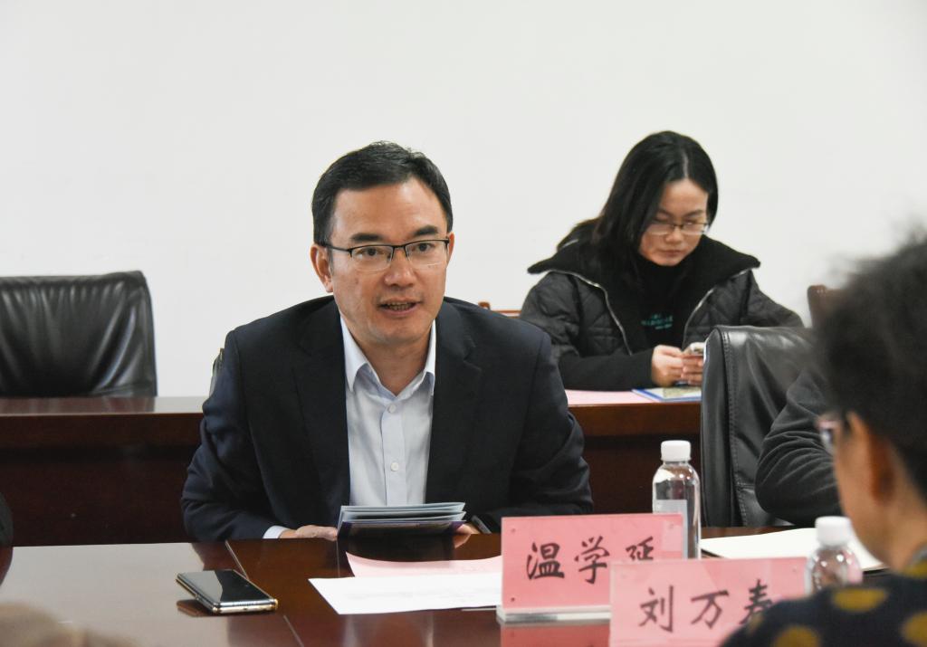 座谈会上,温学延代表学校对市社科联刘万春一行的到来表示热烈欢迎,并就我校社会科学研究等工作作介绍,同时,希望市社科联能够在重点课题申报和社科基地建设等方面多给予帮助和指导。