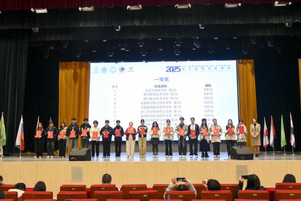 在全场的热切瞩目下,高学鹏庄重宣读获奖名单。本次大赛共产生一等奖14项、二等奖28项、三等奖40项。我校参赛队伍荣获三项一等奖,分别是教师组一等奖获奖选手:廖楠老师、叶罗茜老师;高职组一等奖选手:二队孔林同学、沈嘉华同学;一队刘志芳同学、孙浩铭同学;我校获得赛事“突出贡献奖”。