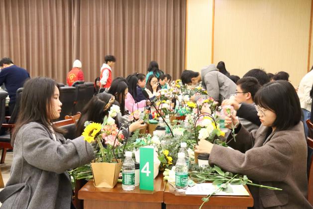 本次沙龙特别设置“花漾疗愈”插花体验环节,融入人文关怀与减压元素。叶罗茜老师现场示范并讲解插花基础技法,辅导员们也亲手修枝、配色与构思,完成了一件件各具特色的花艺作品。这一环节以艺术疗愈为载体,帮助辅导员放松身心、缓解压力,同时营造出轻松自由的交流氛围。