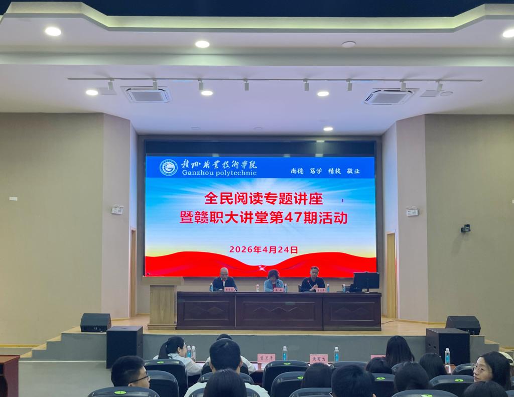 4月24日上午,学校公共实训基地书香弥漫、暖意融融。以“书香润心 阅读致远”为主题的全民阅读专题讲座暨赣职大讲堂第47期活动顺利举行。