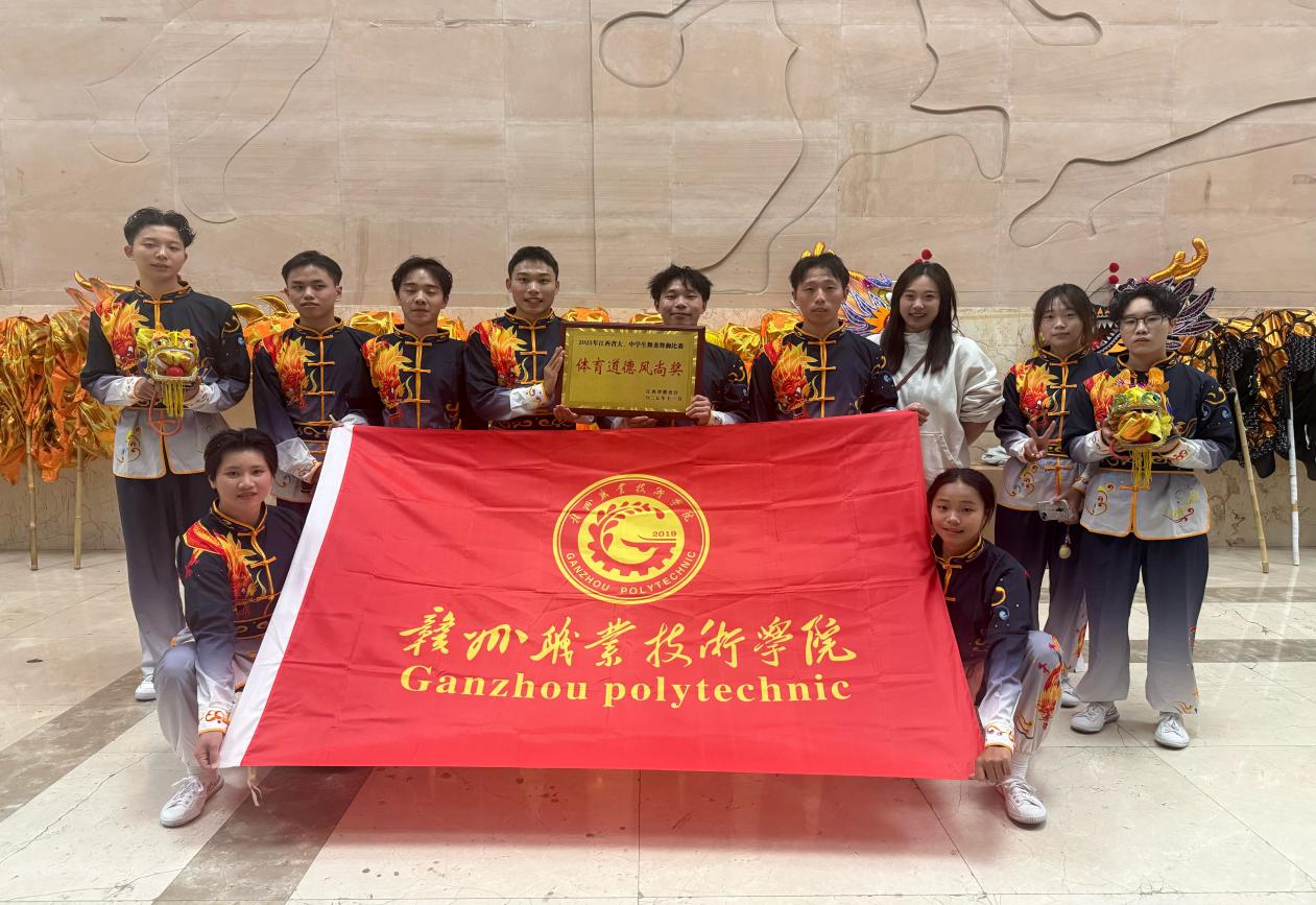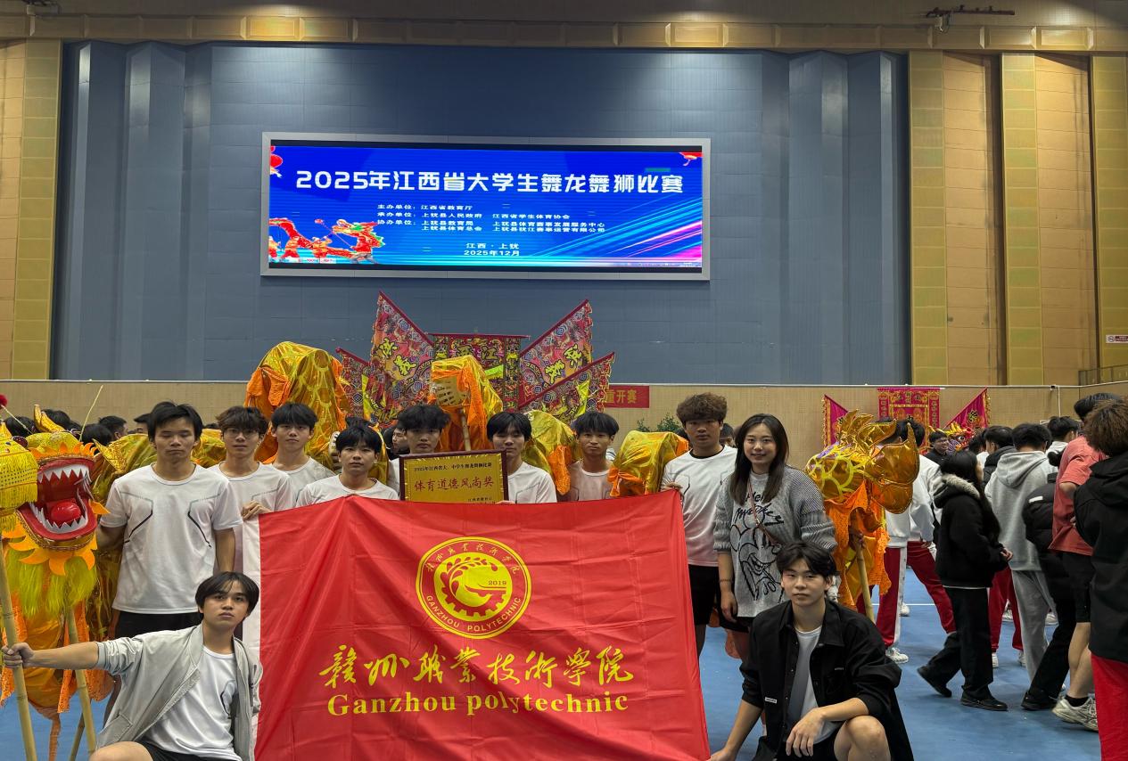 12月1日,2025年江西省大学生舞龙舞狮比赛在上犹县文体中心拉开帷幕,本次赛事由江西省教育厅主办,我校学子首次参赛,在此次比赛中,分别参加了专科甲组3人、5人彩带龙项目、专科甲组舞龙竞速项目、专科乙组3人、5人彩带龙项目,凭借其奋勇拼搏的精神勇夺3金1银的好成绩。还获得了省教育厅颁发的体育道德风尚奖荣誉称号。此次优异的成绩离不开学校全方位的支持,同时也离不开教练员及运动员的不懈努力!
