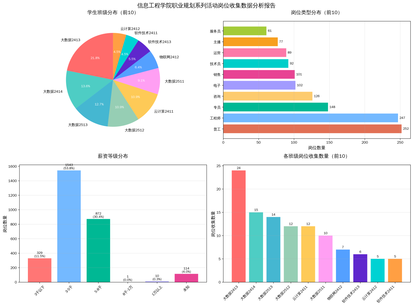 多渠道联动企业:本学期已与23家信息工程领域企业建立合作,定期开展企业宣讲会18场,让学生提前了解行业动态;