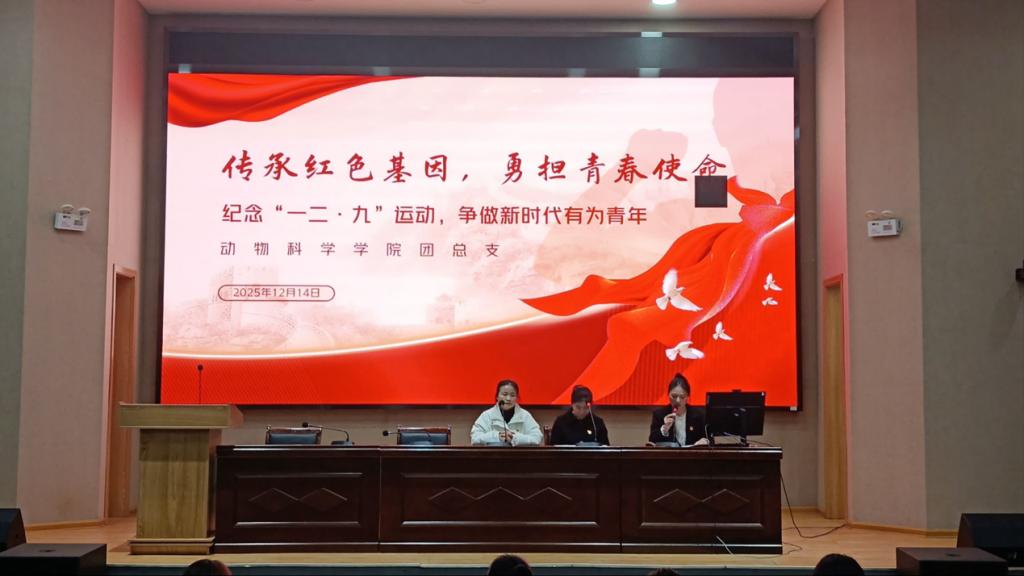 12月16日晚,动物科学学院在实训基地举行“传承红色基因,永担青春使命”主题入团仪式,并于随后召开2025年度团员教育评议工作专题部署会。学院学工党支部书记周满平老师、团总支书记许慧媛老师、全体新老团员、各班级团支书共同参与了本次系列活动。活动以仪式激励与制度规范相结合的方式,扎实推进团员队伍建设,强化青年思想政治引领,为学院共青团工作注入新活力。