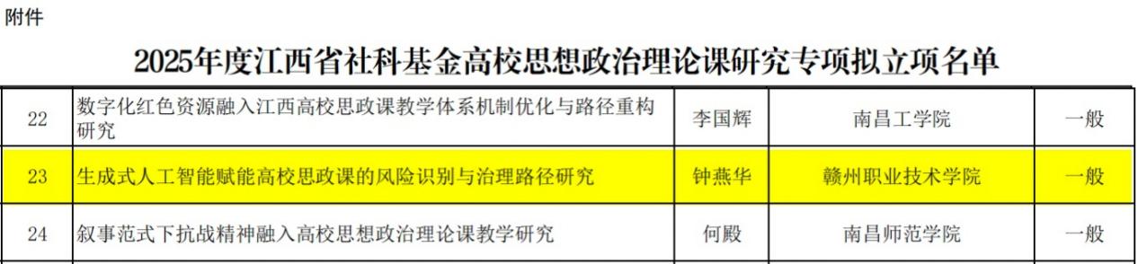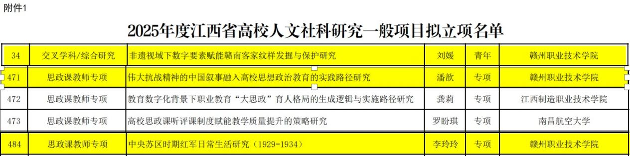 近日,江西省教育厅公示2025年度江西省社科基金高校思想政治理论课研究专项及高校人文社会科学研究项目拟立项名单,学校多名青年教师主持申报的课题凭借扎实的研究基础、创新的研究视角成功获批,其中马克思主义学院3项,经济管理学院1项。立项数量与质量均实现稳步提升,彰显了学校在人文社科领域的科研实力与育人担当。