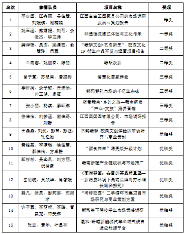 附件:2025年赣州职业技术学院大学生市场研究与商业策划竞赛获奖名单如下:
