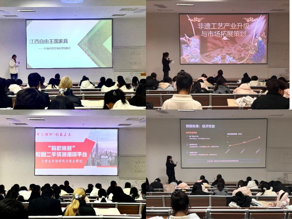 江西自由王国家具项目深入分析儿童环保家具市场,为企业量身定制从产品升级、渠道拓展到品牌推广的全链条发展策略;非遗工艺团队以“艺脉承光”非遗馆为载体,探索“文化体验+IP开发+跨界融合”的运营路径,推动非遗活态传承与商业价值共生;“赣职焕新”聚焦校园闲置资源流转难题,提出“线上小程序+线下服务点”双轨运营模式,致力于打造便捷、可信、环保的校园二手交易生态;赣职文创则着力构建校园文化IP体系,开发兼具实用性与纪念意义的文创产品,强化校园文化认同与情感连接。