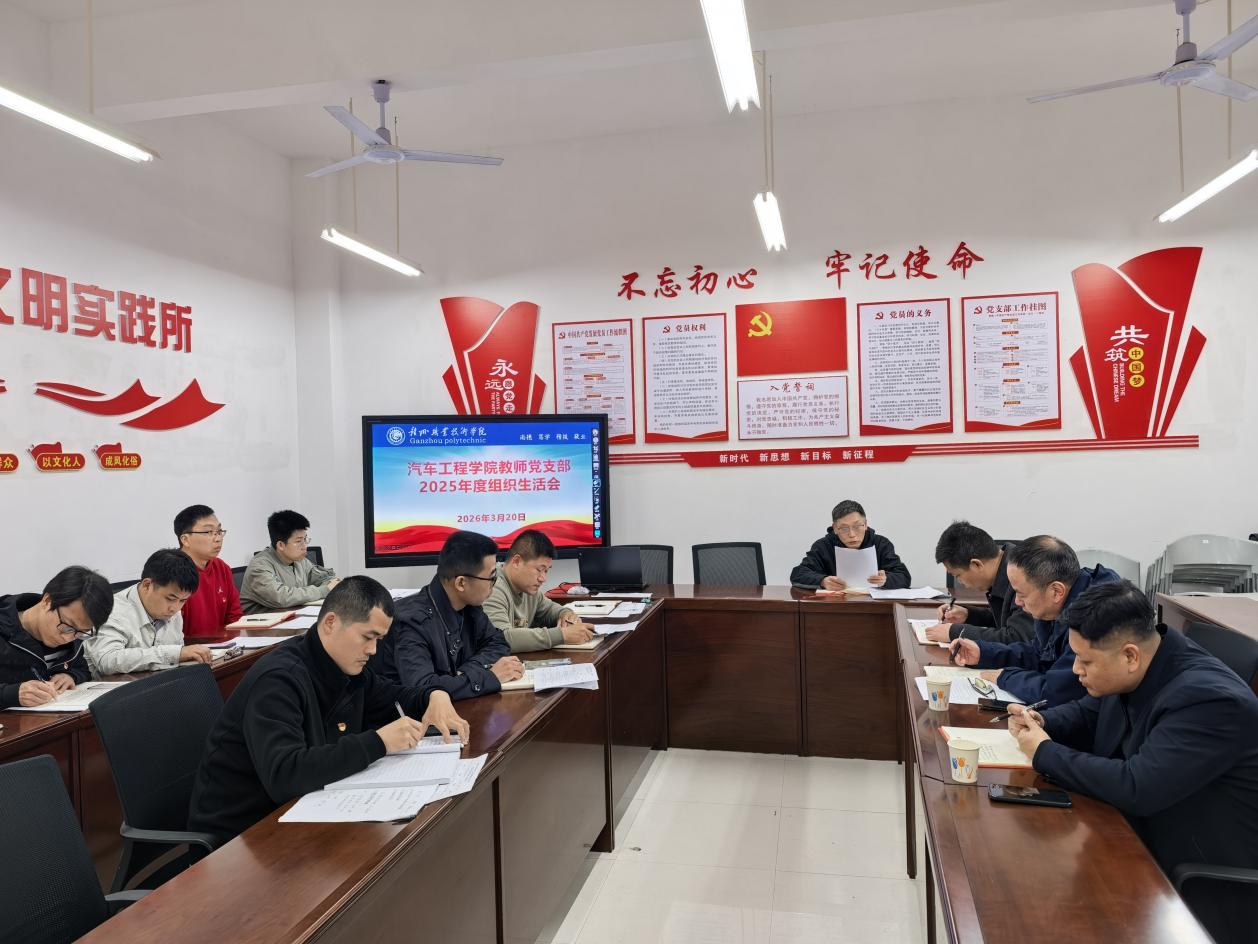 3月20日下午,汽车工程学院教师党支部召开2025年度组织生活会。校领导李方柏、电气工程学院院长左伟平莅临指导。会议由支部书记李明全主持,支部16名党员全员参会,1名入党积极分子列席会议,同时邀请2名群众代表到场参会评议。