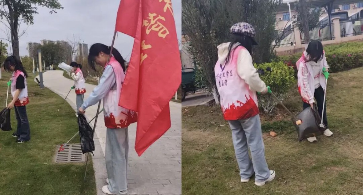 为践行生态文明建设理念,传承雷锋精神,引导青年学子树立环保意识,各二级学院组织青年志愿者开展生态守护主题志愿服务活动,走进周边公园、河岸区域,开展巡河护河、垃圾清理等活动。志愿者们手持垃圾钳、拖着垃圾桶,沿着步道、草坪、河岸捡拾被遗弃的垃圾,清理杂物与白色污染,以实际行动守护生态环境,在劳动中体会奉献的意义,践行绿色发展理念,彰显赣职青年的生态担当。