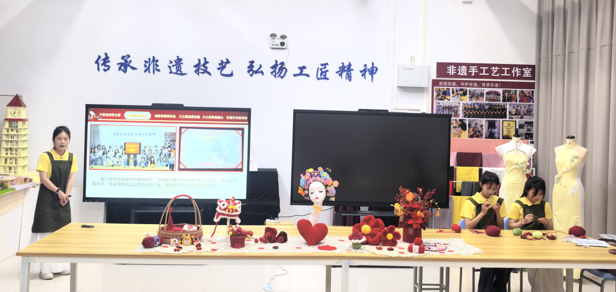 选拔赛严格遵循“自主定题、自主设计、自选设备”要求,围绕真实场景展示专业技能。参赛队伍聚焦客家钩针编织、传统竹编、非遗剪纸、古法拓印四大特色技艺,比赛同时进行技能操作和展示汇报,重点考察选手技艺功底、操作规范与创新能力。评委团从技能水平、职业素养、应用价值、团队协作、创新创意五大维度综合评分,确保公平公正。