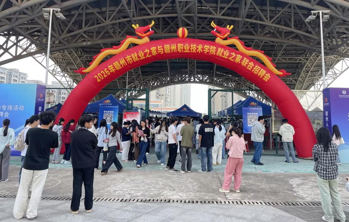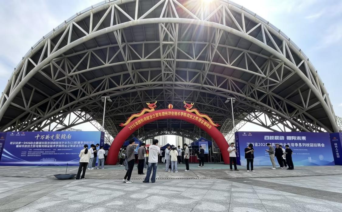 4月25日,由江西省教育厅、赣州市人力资源和社会保障局、赣州职业技术学院共同主办,江西省教育评估监测研究院、赣州市就业创业服务中心、赣州职业技术学院学生管理与就业服务处、赣州市人才集团有限公司共同承办的“十万英才聚赣南”2026年全国城市联合招聘高校毕业生(江西)春季专场活动、“百校联动·赣有未来”江西省2026届高校毕业生春季系列校园招聘会,在学校风雨球场成功举办。