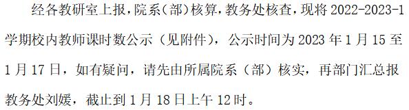 关于2022-2023第一学期课时公示通知