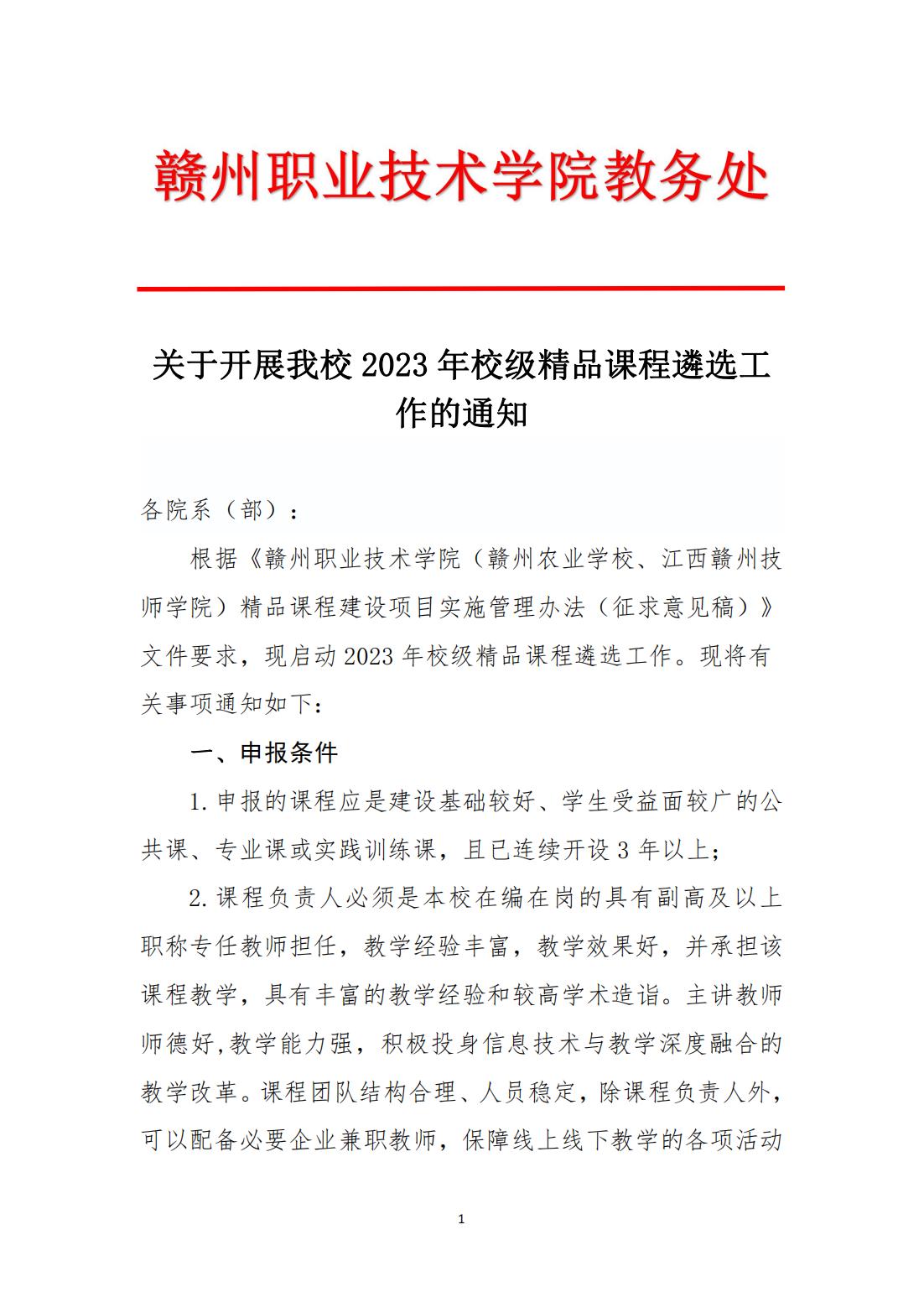 关于开展我校2023年校级精品课程遴选工作的通知