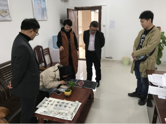 欧阳荣华一行先后来到艺术设计系、汽车工程系、机电工程系,听取了艺术设计系负责人余万霞、汽车工程系负责人李明全和机电工程系负责人左伟平对参展展品的制作、材料及设计等方面的详细介绍,并对展品的现场布展、介绍说明等提出了建议。并观看了艺术设计系学生方丽英现场雕刻表演。