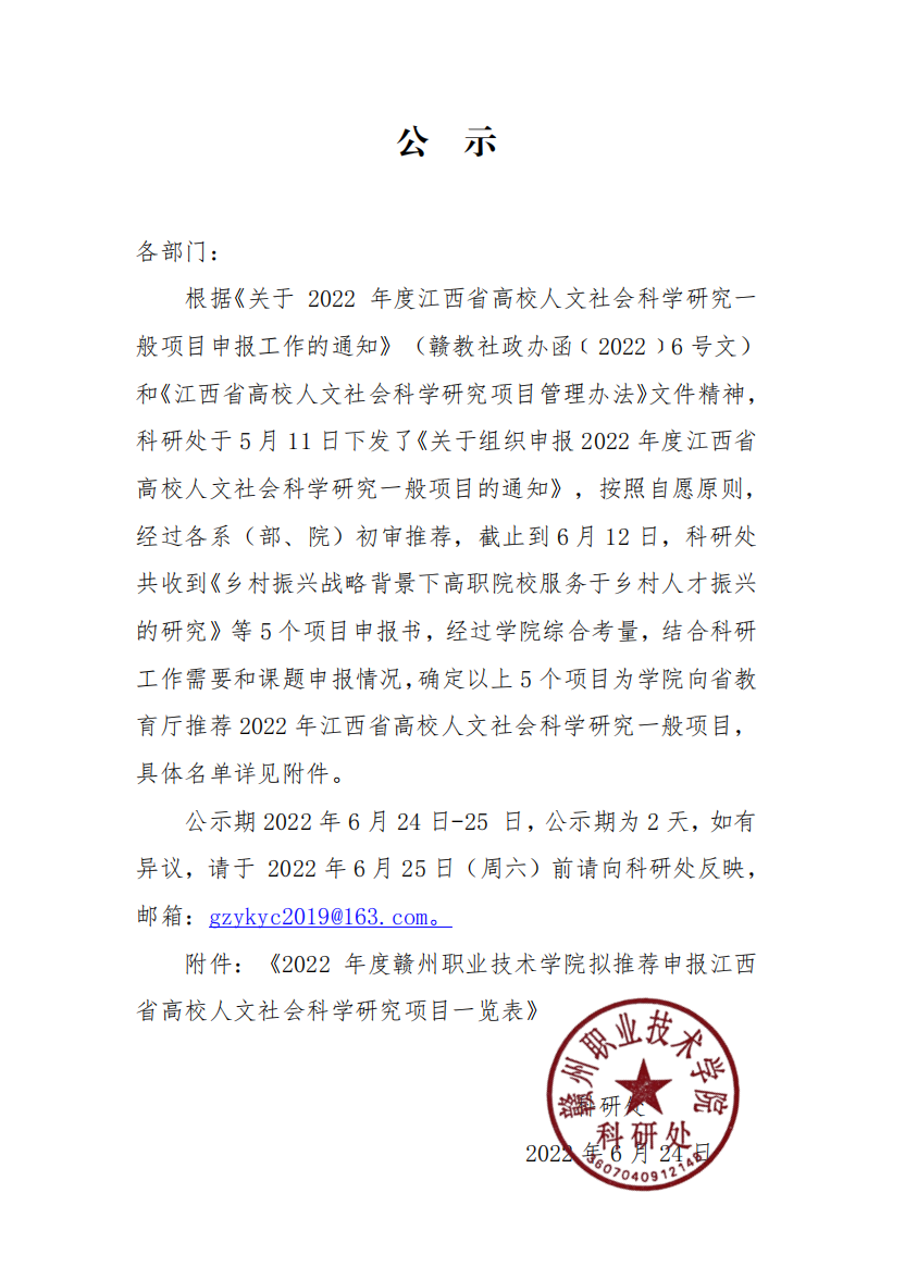 【公示】关于 2022 年度江西省高校人文社会科学的公示