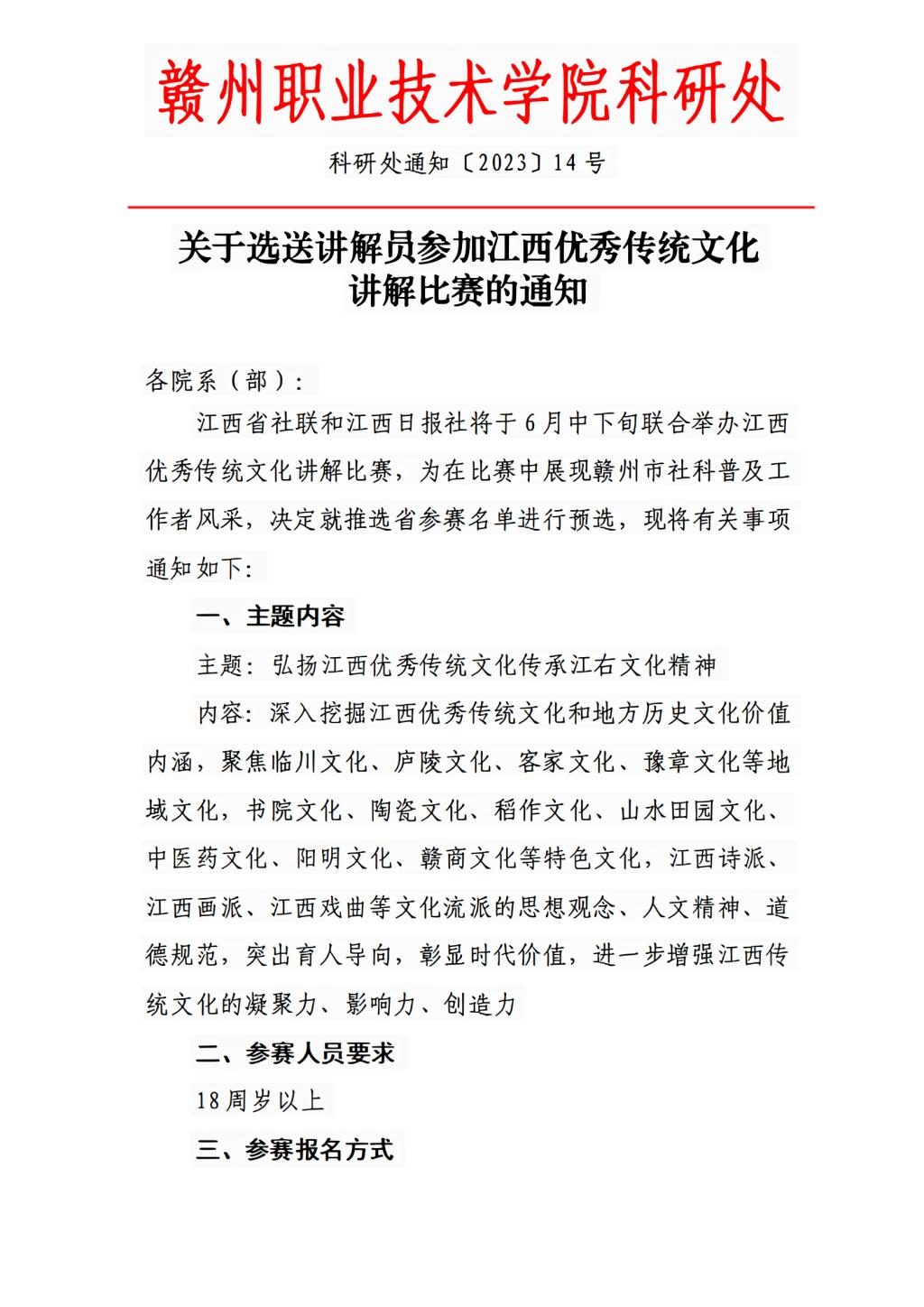 关于选送讲解员参加江西优秀传统文化 讲解比赛的通知