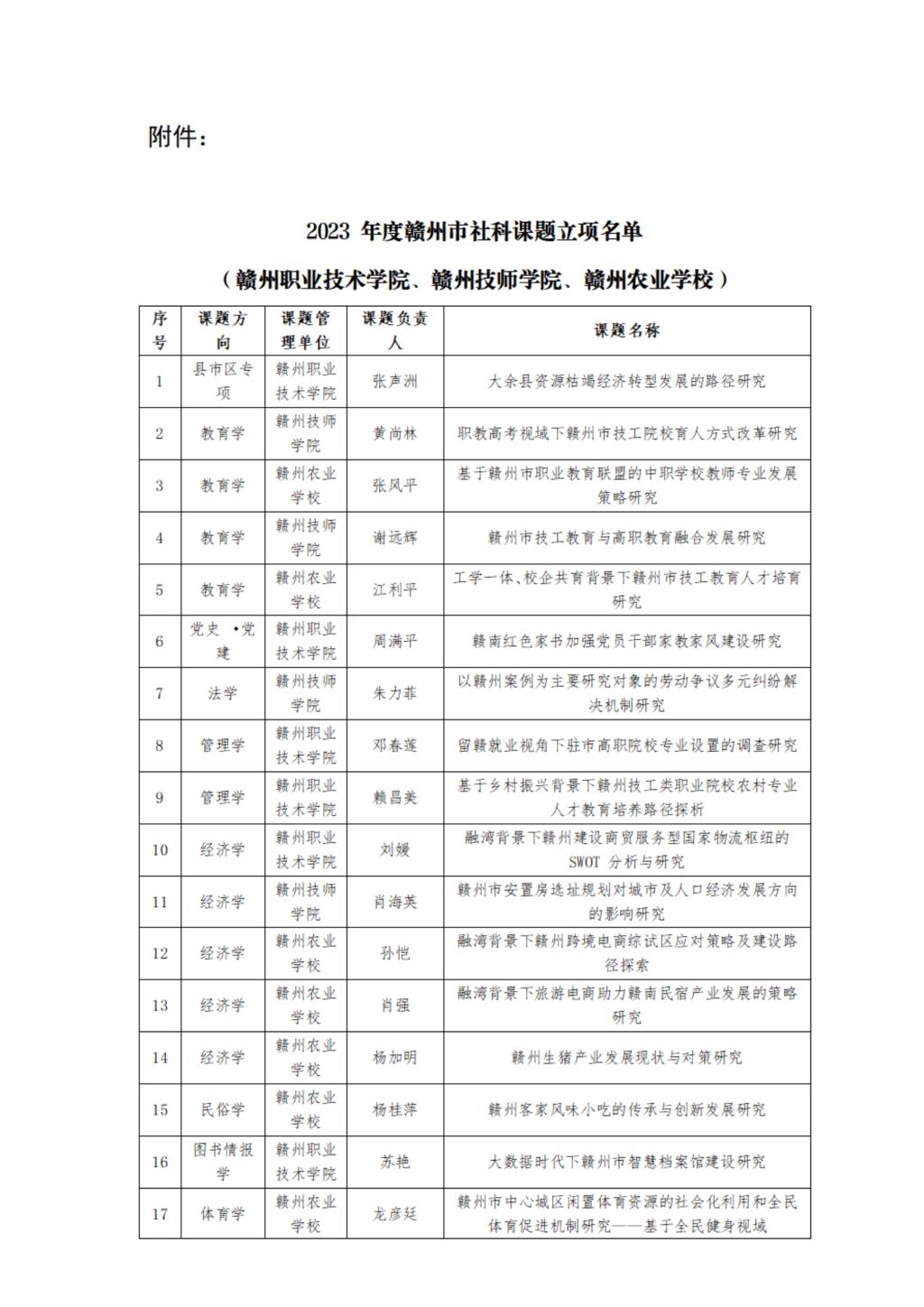 关于2023年度赣州市级社会科学研究课题立项的通知