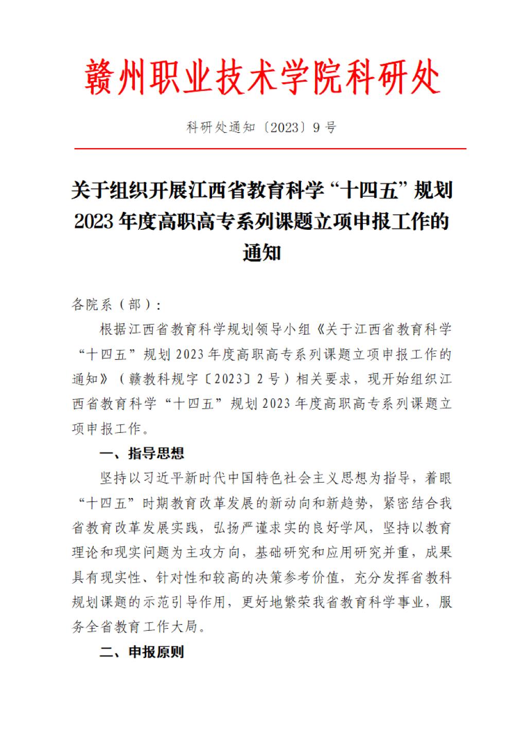 关于组织开展江西省教育科学“十四五”规划2023年度高职高专系列课题立项申报工作的通知