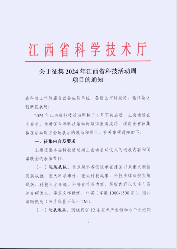 关于征集2024年江西省科技活动周项目的通知