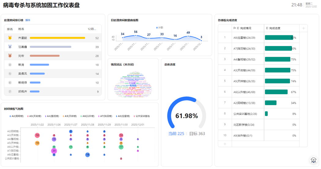 6.网络安全防护持续加强,累计拦截恶意网络攻击1200余次,封禁高危IP地址13个,完成漏洞扫描修复12轮,切实筑牢校园网络安全防线。