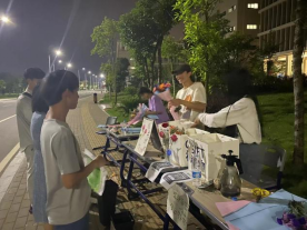 太阳慢慢落山,夜幕降临,路灯接二连三地亮起,现代农林工程系拾花小舍在陆羽楼楼下售卖着浪漫的花束。充满青春活力的小摊吸引着人们的驻足,该小组成员都在尽力招揽顾客,有的站在摊前吆喝,有的介绍着不同的花束,有的对鲜花进行搭配、包装出浪漫的鲜花。一切都在井然有序地进行,此起彼伏的叫卖声交杂着欢声笑语,原来是现代农林工程系2019园艺技术五年制的同学正在开展创新创业实践活动。