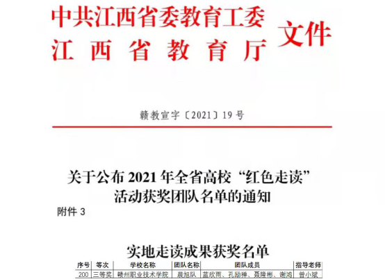 近日,省教育工委、省教育厅组织开展的全省高校“红色走读”活动获奖名单公布,园艺与园林工程系学子的作品荣获“实地走读成果”三等奖。