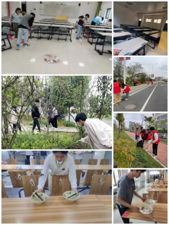 2019级园艺技术五年制1班、2020级园林技术三年制1班、2021级园林技术三年制1班等10个班级的团员们则通过清扫校园大小角落、回收餐盘等形式续写新时代雷锋日记。