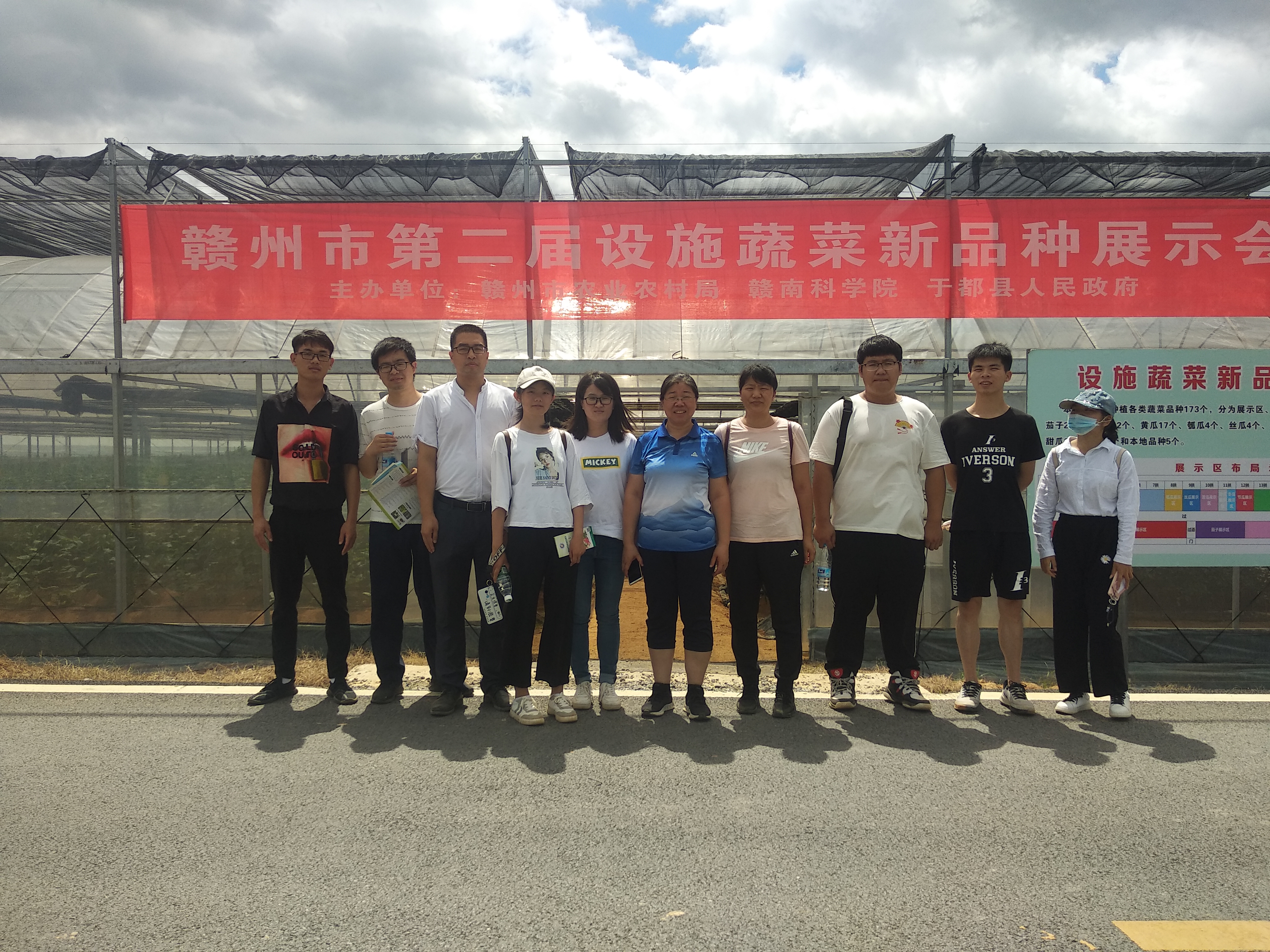 下午,师生又驱车来到了经开区赣州五彩城农业基地。该基地是集绿化苗木、蔬菜、水果、花卉种植与农业休闲为一体的知名企业。基地总经理吴亿带领师生深入了解基地构造设施、无土栽培、水肥一体化等情况。棚区内的闷热也阻挡不了同学们对知识的渴求,他们争先恐后向技术人员提出相关问题,技术人员结合自己的实践经验一一给出详细解答,现场学习气氛浓厚。