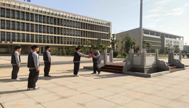 2021年6月7日园艺与园林工程系学子相聚国旗下,迎着晨光举行着庄严的升旗仪式。升旗仪式共有3项内容,首先是迎中华人民共和国国旗,国旗护卫队队员们迈着铿锵有力的步伐,迎国旗入场。鲜红的国旗在阳光下熠熠生辉,在全体师生目光里在走向升旗台。