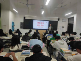 主题班会上,班主任和辅导员组织同学们学习了《天下兴亡、我的责任——台湾大学校长高震东在大陆的演讲摘录》,提高了同学们忠党爱国,爱岗敬业,为国家振兴而努力的思想意识。