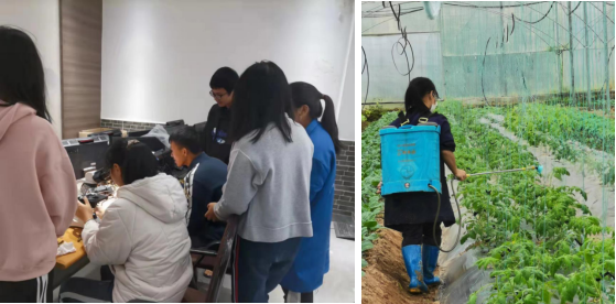 基地的田间地头分外热闹同学们在田间课堂结合不同作物正在积极探讨病虫害诊断防治相关知识。模块化教学实训,真正实现了“把课堂搬到田间地里头”学生们与蔬菜距离接触,在实践生产中自主发现问题,解决问题