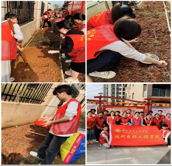 3月17日下午,现代农林工程学院志愿者服务队又联合章良村新时代文明实践站开展了“青春护绿,你我同行”主题志愿服务活动,在章良村新时代文明实践站,志愿者们有序领取绣球、洋桔梗、黄瓜苗、苦瓜苗等花种、菜苗之后,大家团结协作,挥锹铲土、播撒种子、浇水加固,共同为章良村种下一颗颗希望的花苗,为初春的土地带来了生机与活力。