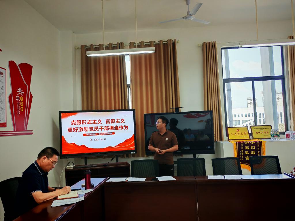 支部副书记曾小斌以“克服形式主义、官僚主义,更好激励党员干部担当作为”为主题开展了专题党课。他深刻剖析了形式主义和官僚主义的危害,并强调了党员干部在新时代背景下的责任与担当,号召全体党员要切实转变工作作风,以实际行动践行初心使命,激发干事创业的热情,为推动学院事业发展贡献力量。