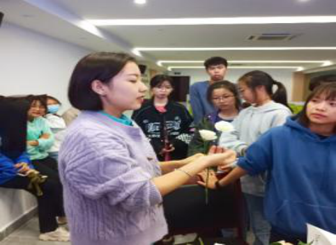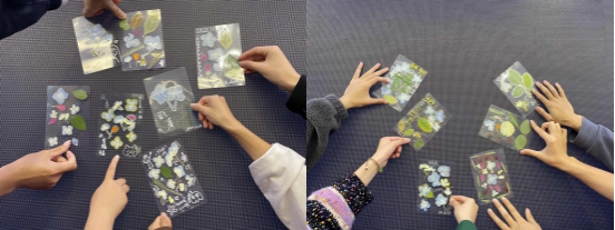 活动开始,叶罗茜老师先向新成员介绍了上周压花活动的内容,给新成员进行分组并且带领他们体验上周压花制作过程以及将上周老成员制作的压花展现出来。