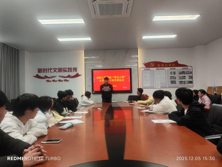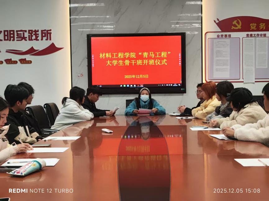 为深入贯彻落实青年马克思主义者培养工程要求,着力为党培养信仰坚定、能力突出的青年政治骨干,12月5日下午,材料工程学院在实训基地会议室举行新一期“青马工程”大学生骨干培训班开班仪式。学院团总支负责老师廖瑞姬主持仪式,学院学工党支部书记练淑芳、全体大骨班学员到场参加。