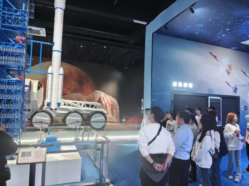 下午,师生们转赴红兴谷实践营地。在军工装备互动体验区,同学们亲身体验了我国火箭发射的模拟过程。从准备、点火到升空,每一个环节都让大家感受到了国家科技实力的迅猛发展和国防建设的辉煌成就。这种互动式体验不仅增强了学员们的国防意识,也激发了他们对科技创新的兴趣。