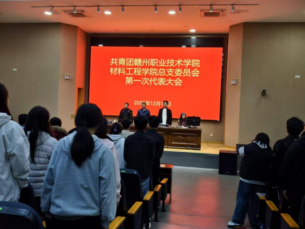12月12日,共青团赣州职业技术学院材料工程学院总支委员会第一次代表大会在实训基地报告厅隆重召开。材料工程学院党总支书记刘书友、学工党支部书记练淑芳、专职辅导员朱红梅、廖瑞姬以及全院团员代表共聚一堂,共同见证了学院共青团工作的重要时刻。大会由练淑芳老师主持。