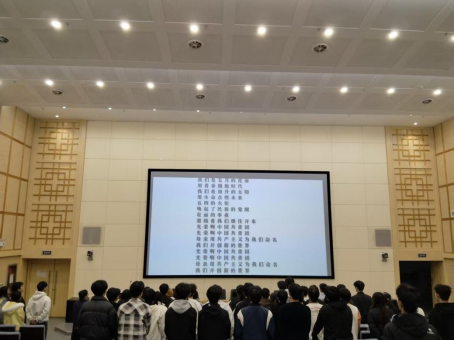 “我志愿加入中国共产主义青年团,坚决拥护中国共产党的领导……”在吴旋同学的带领下,全体新团员面向团旗,高举右拳,庄严宣誓。铿锵有力的誓言在报告厅内回荡,表达了新团员们坚定不移跟党走的决心和为共产主义事业奋斗终身的信念。