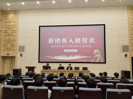 12月18日,材料工程学院在图书馆报告厅隆重举行新团员入团仪式。材料工程学院党总支书记刘书友,团总支书记廖瑞姬出席仪式,2025年度新发展团员、老团员代表齐聚一堂,共同见证这一庄严时刻。仪式由团总支副书记李顺主持。