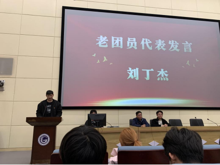 老团员代表刘丁杰同学结合自身经历,分享了对团员责任的理解和感悟。他鼓励新团员们珍惜团组织提供的成长平台,将个人理想融入时代洪流,在服务集体、奉献社会中实现青春价值。
