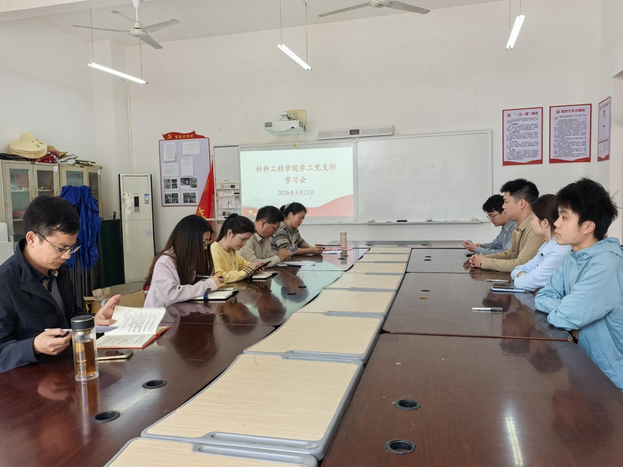 3月23日下午,材料工程学院学工党支部在学工党员活动室(A201)召开3月党支部学习会暨2025年度组织生活会会前集中学习,支部全体党员参加。