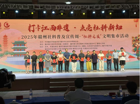 活动中,市社科联高度肯定我校在社科普及方面的贡献,颁发2025年度赣州市社科普及先进集体证书,这既是对学校社科工作的肯定,更是对学校非遗文化推广方式的认可。