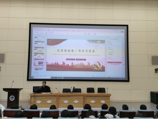 为深入学习贯彻习近平总书记关于思政课建设的重要论述,持续推进思政课改革创新,11月12日下午,学校党委副书记汤晓军在图书馆报告厅,以“向英雄致敬书时代答卷”为主题,为现代服务学院师生带来一堂兼具历史厚度与实践温度的思政课。