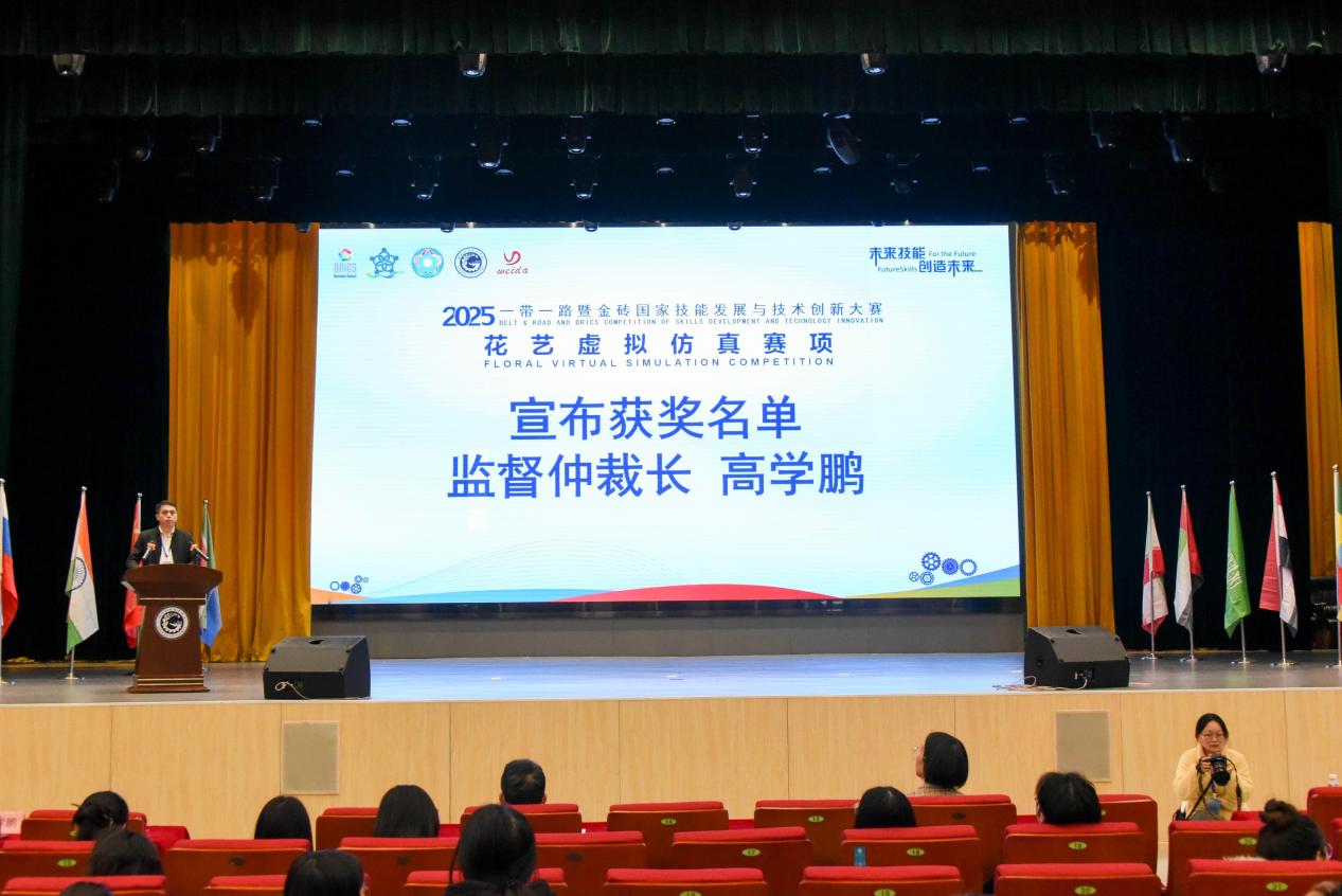 最后,赣州市委教育工委副书记赖晓琴宣布2025“一带一路”暨金砖国家技能发展与技术创新大赛花艺虚拟仿真赛项顺利闭幕!