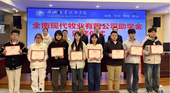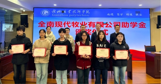 此次企业助学金的设立,是全南现代牧业有限公司对我校学生的深切关爱,更是校企双方在产教融合方面的一次生动实践。双方共同表示,接下来的工作中还将在课程共建、技术研发、实习就业一体化等领域的深度协作,共同开创协同育人、共赢发展的新局面。