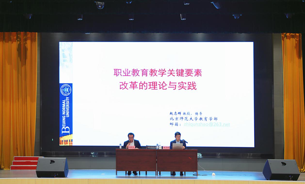 为全面深化职业教育教学改革,精准推进专业、课程、教材、教师、实训等教学关键要素优化提升,3月25日下午,学校在行知楼一楼报告厅成功举办“职业教育教学关键要素改革的理论与实践”专题讲座。北京师范大学赵志群教授应邀作专题辅导,讲座由学校党委委员、副校长湛邵斌主持,在家领导班子,全体教职工参加学习。