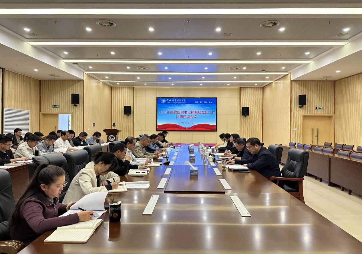 3月25日,学校在行知楼二楼会议室召开2025年度党组织书记抓基层党建工作述职评议会。学校党委书记温学延主持会议,在家校领导、各二级学院党总支书记、各在职党支部书记、相关部门负责人及党员群众代表参加会议。市委教育工委副书记赖晓琴和职高科干部田东到会指导并作点评。
