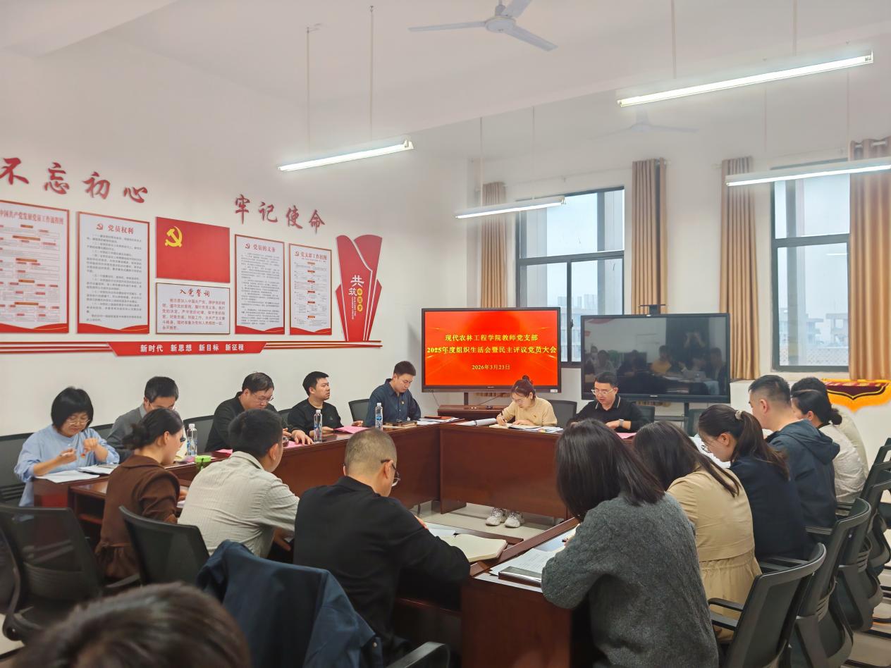 3月23日晚,现代农林工程学院教师党支部在陆羽楼418党员活动室召开2025年度组织生活会暨民主评议党员会议。党委副书记汤晓军,动物科学学院党总支书记、院长吴辉生巡听指导,党委委员、副校长方敏以普通党员身份参会,支部全体党员及群众代表共同参加会议,会议由支部书记陈纬主持。